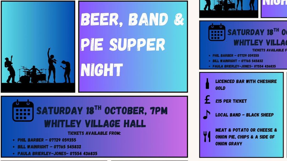 Saturday 18th October Band, Beer and Pie Night 7pm onwards